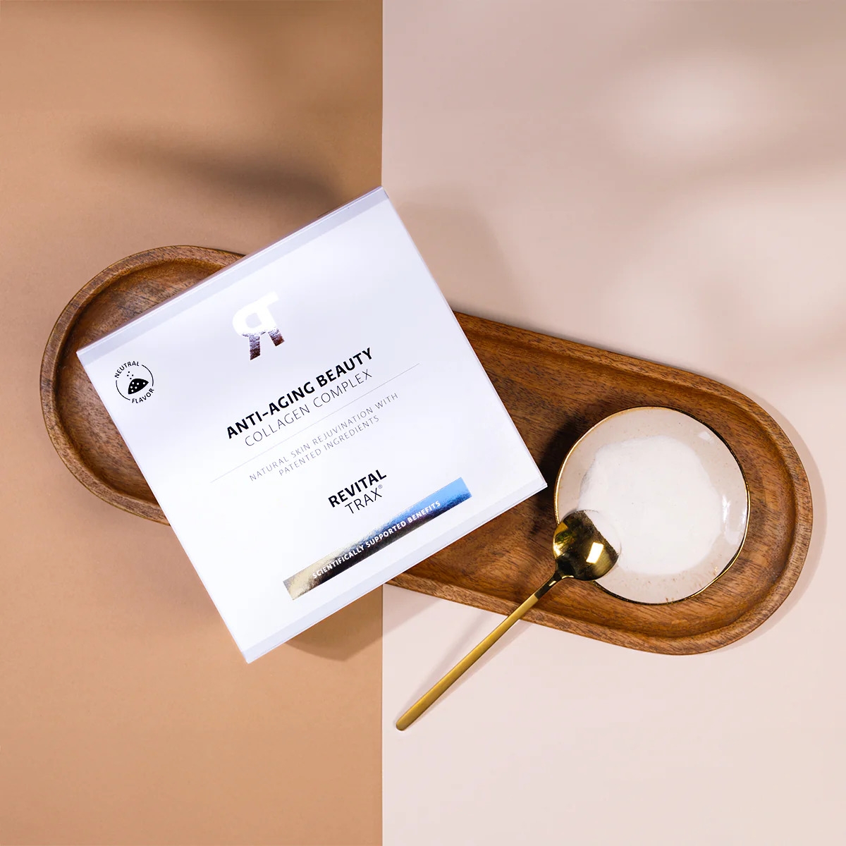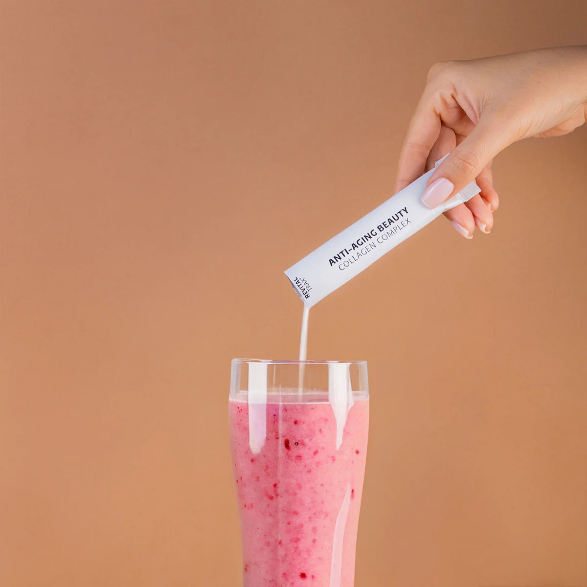 مجمع الكولاجين المضاد للشيخوخة هو مكمل غذائي مسحوق يحتوي على 5000 ملغ من ببتيدات الكولاجين النشطة بيولوجيًا الحاصلة على براءة اختراع VERISOL®، و120 ملغ من حمض الهيالورونيك، و100 ملغ من فيتامين سي، و10 ملغ من الزنك، و1 ملغ من البيوتين.